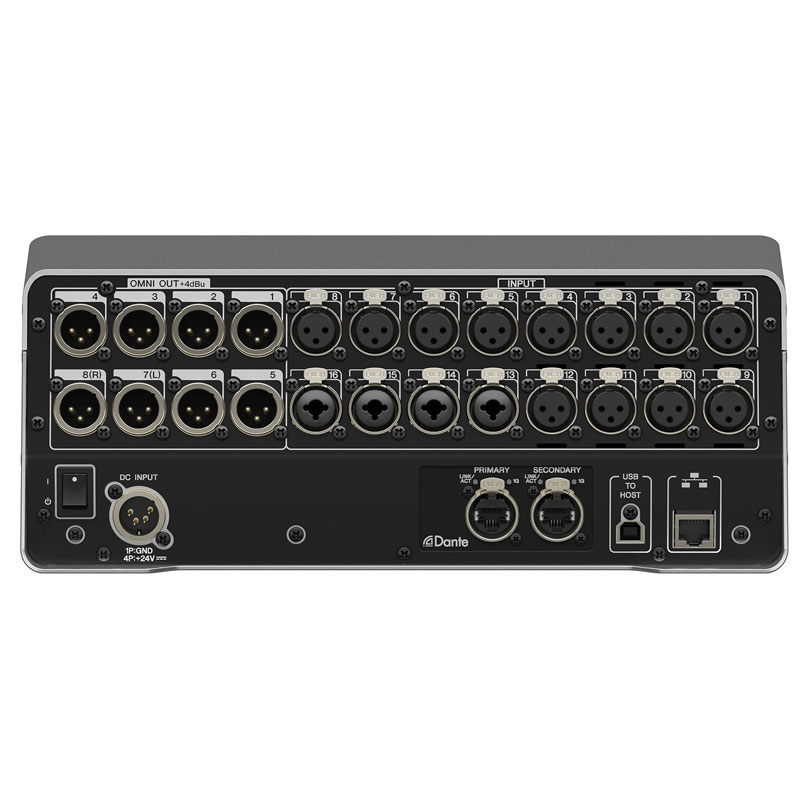 本地I/O:≥16个麦克风/线路(12个XLR + 4个XLR/TRS Phones Combo)输入,8个(XLR)输出