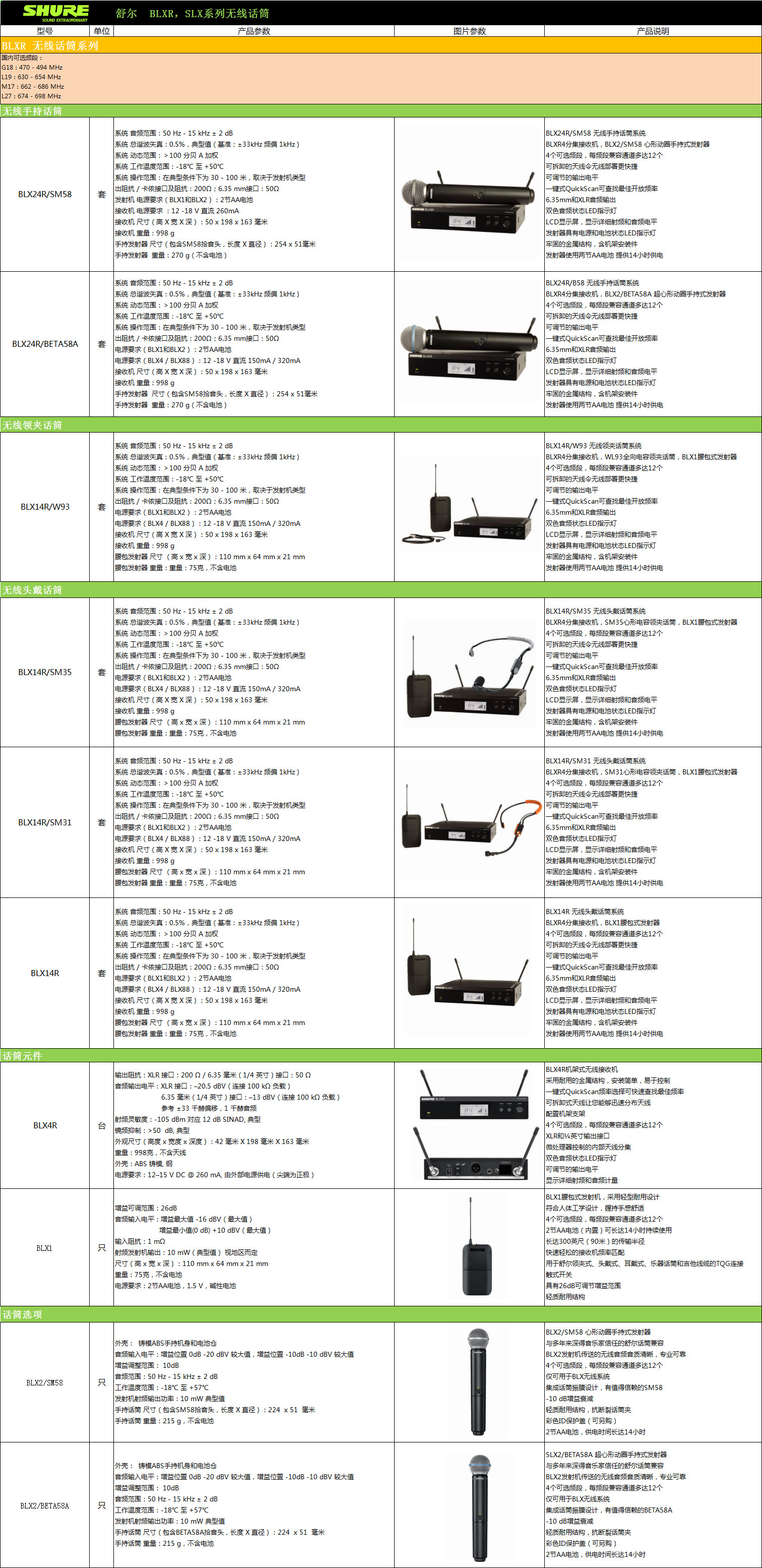 舒尔:麦克风、无线麦克风、入耳式、耳机、头戴式耳机- Shure 舒尔话筒全系列产品大量现货优惠销售中;由于Shure 舒尔出货量大,有些库存并没有那么多,请联系致电我们确定;Shure 舒尔进货走的海运时间会长些,如需要订货,订货周期为3-8周左右。(Shure 舒尔网上能查到的型号都可订货,查询请联系客服),目前所有的Shure 舒尔产品一站式服务,售后无忧 大量xian货!当天发货,价格优美!欢迎来电咨询与采购